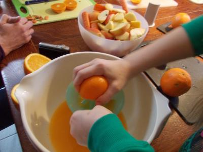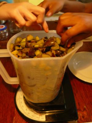 Die Hälfte im Ofen auf ein eingeöltes Backblech legen und 20-30 Minuten bei 180°backen und zwischen drin bisschen einölen.